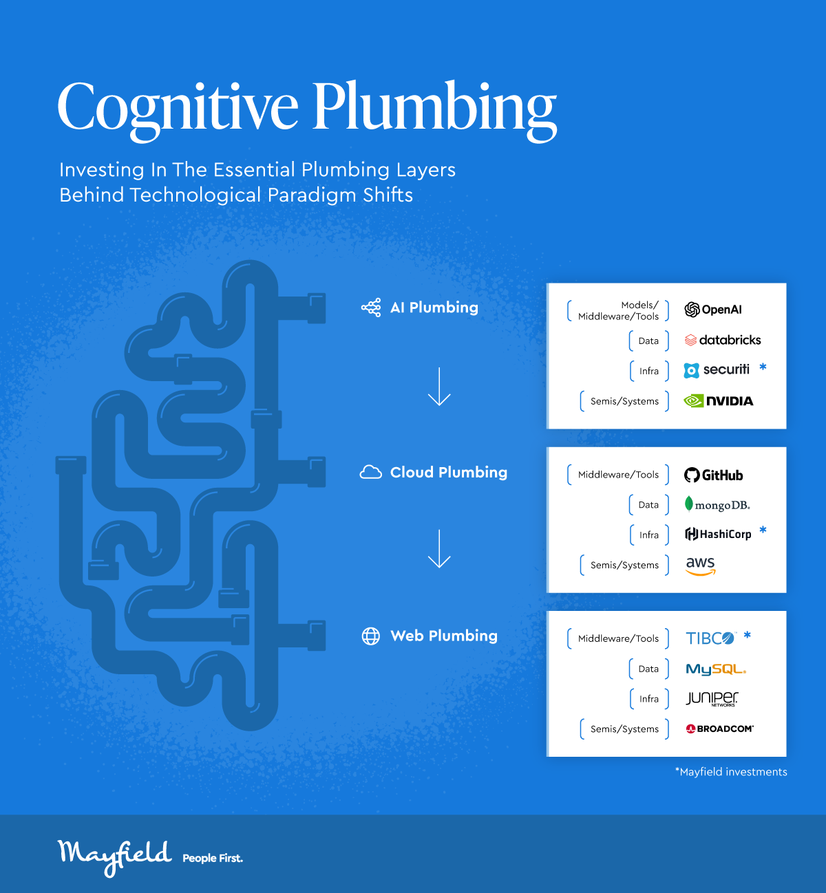 As AI shifts from early adoption to widespread enterprise use, the importance of the “plumbing layer” is resurgent. The transformative potential lies in four layers of the tech stack: models/middleware/tools, data, infrastructure, and semiconductors/systems. The breakthrough of GenAI is in elevating humans by providing a natural language interface and doing cognitive tasks — an era I think of as AI+Humans = Human Squared. In this context, cognitive plumbing unlocks the easy creation of agents, applications, and services that can be built on the foundational technology.